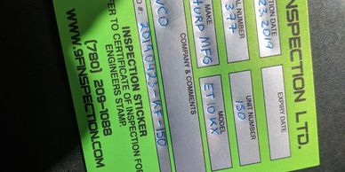 9F Inspection provides lifting equipment inspection and certification. OH&S standards require the inspection and certification of most lifting equipment annually. We are qualified to perform all periodic and annual structural inspection.